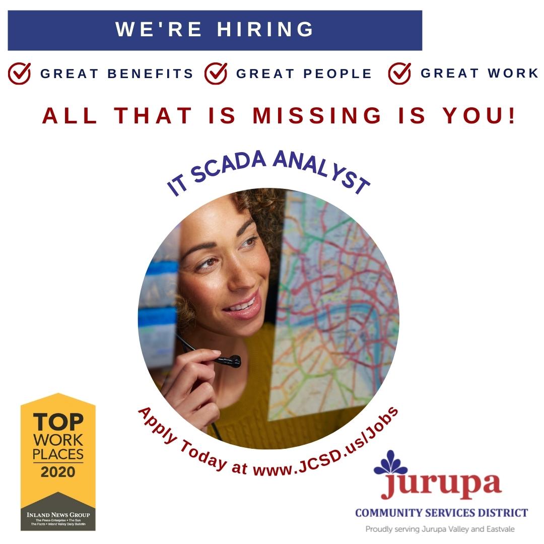 Jurupa Community Services District On Twitter We Re Looking For An It Scada Analyst To Join Our Jcsd Team It Could Be You Great Benefits Great People Great Work Apply See All